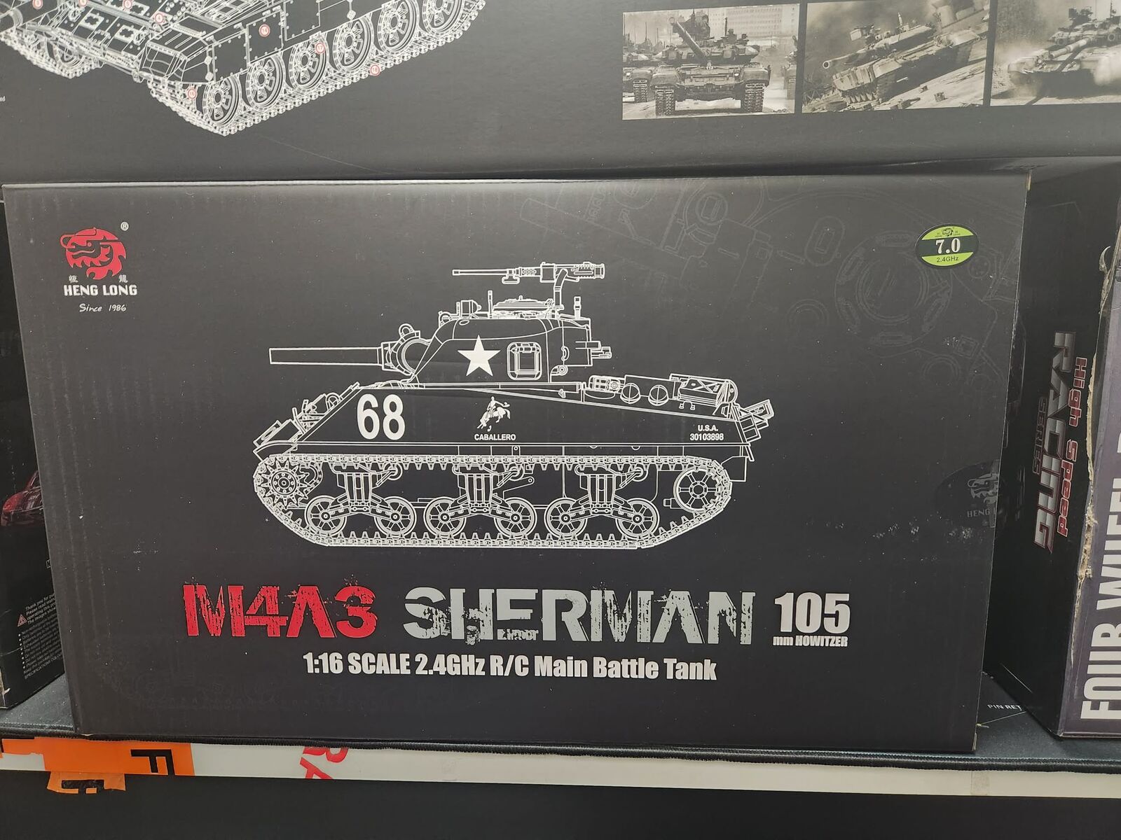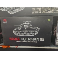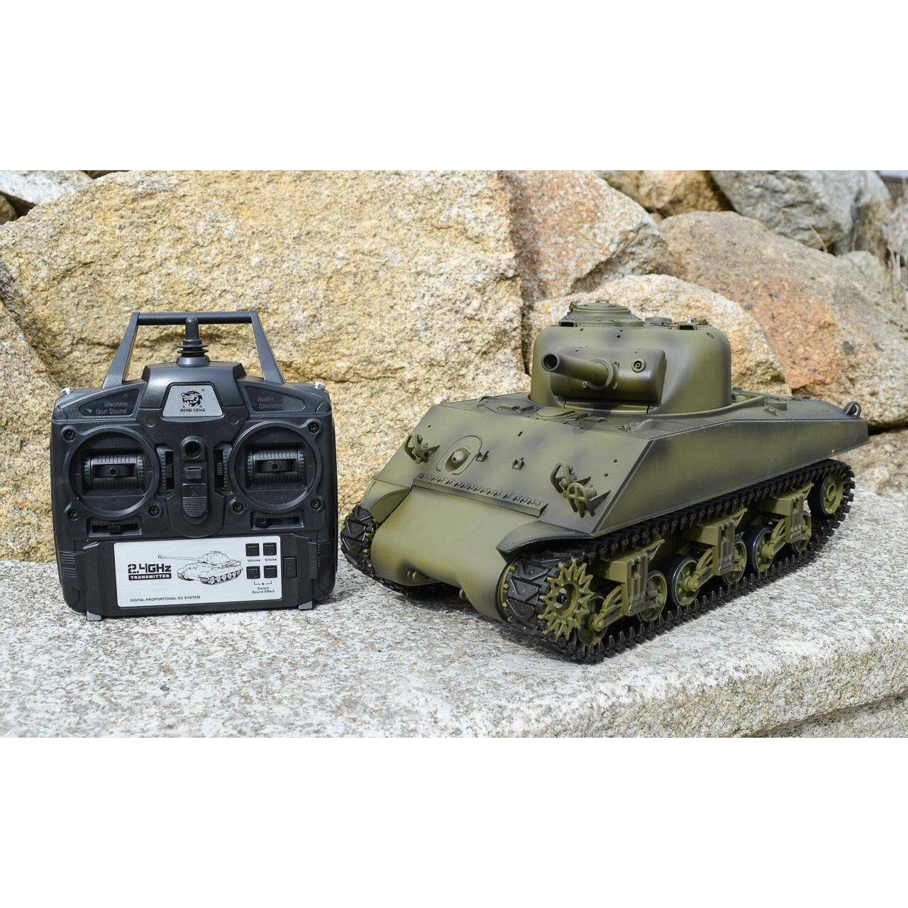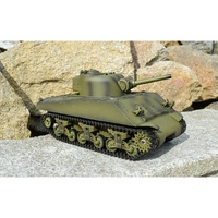 This is a RC 1/16 ready to play USA M4A3 Sherman tank. This is a 1/16 real tank in action featured realistic caterpillars and suspension system that allows pivot turning like a real tank. The tank also features realistic recoil action during shooting and the turret can turns about 320 degree. Radio frequency is adjustable so it is perfect to tank battles and war simulation.