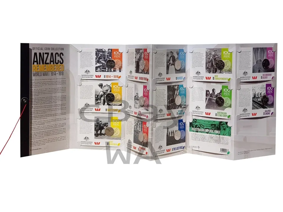 2015 14-Coin Collection 14x 20c in Official Folder ANZACS REMEMBERED BU - NEW