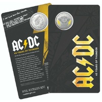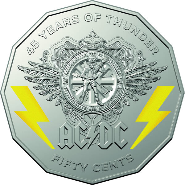 2018 50¢ ACDC - 50c Coloured CuNi UNC coin on card 45 years of thunder