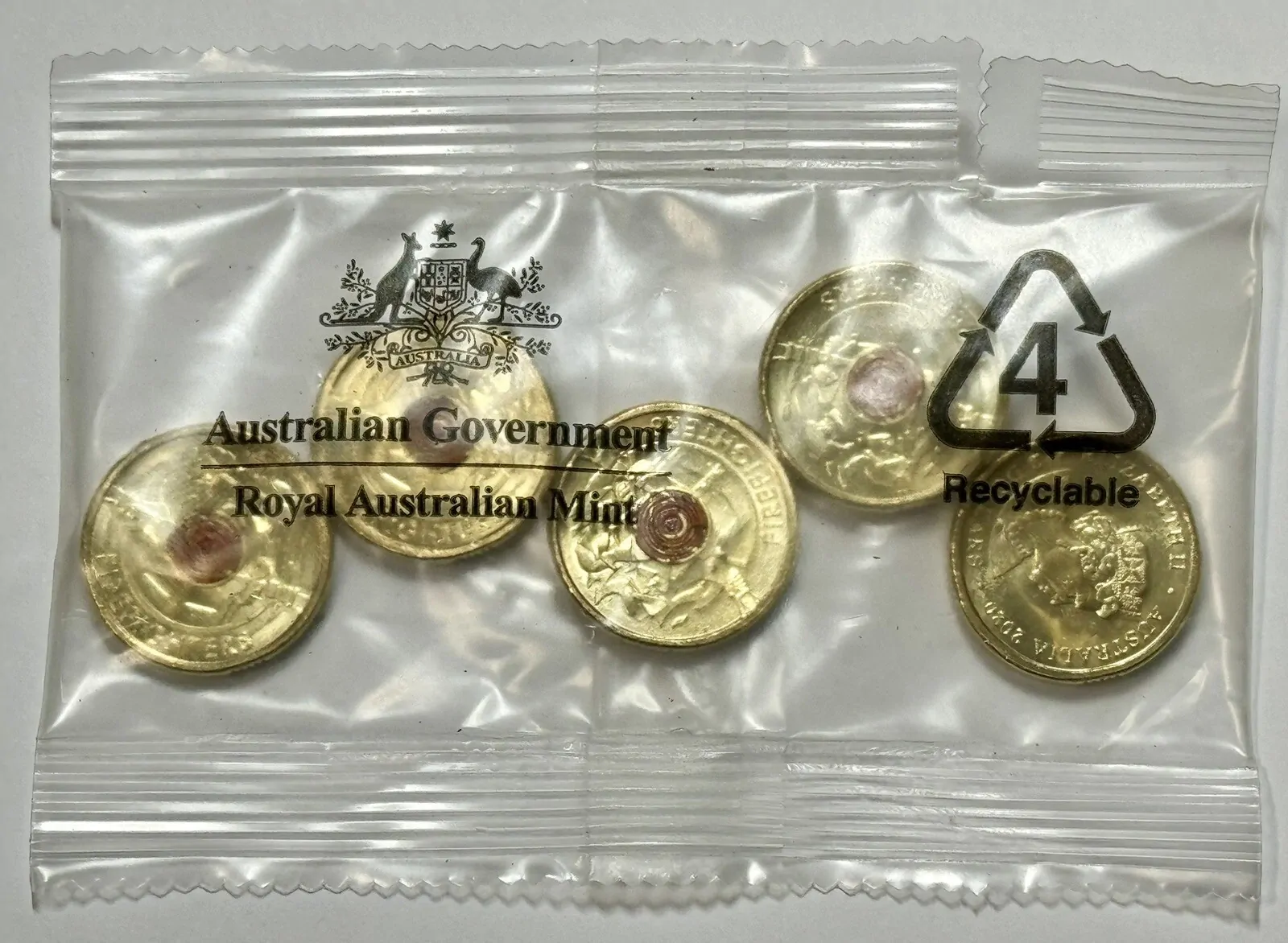 These original coin satchels were obtained from the Mint's cash swap events. Each satchel contains 5 uncirculated coins.
