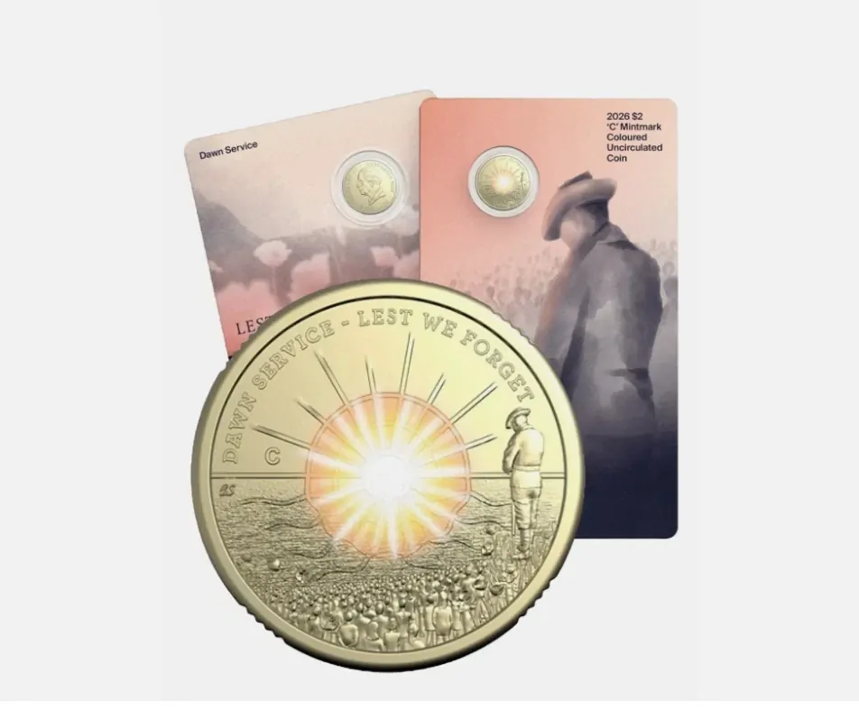 Each year on 25 April, Australians gather at dawn to remember those who served and sacrificed. This coloured $2 coin commemorates the Dawn Service—an enduring ritual of reflection held across Australia and at key sites overseas, including Gallipoli. In 2020 and 2021, when public services were restricted, many observed the dawn from their driveways, reaffirming the place this tradition holds in our national memory.