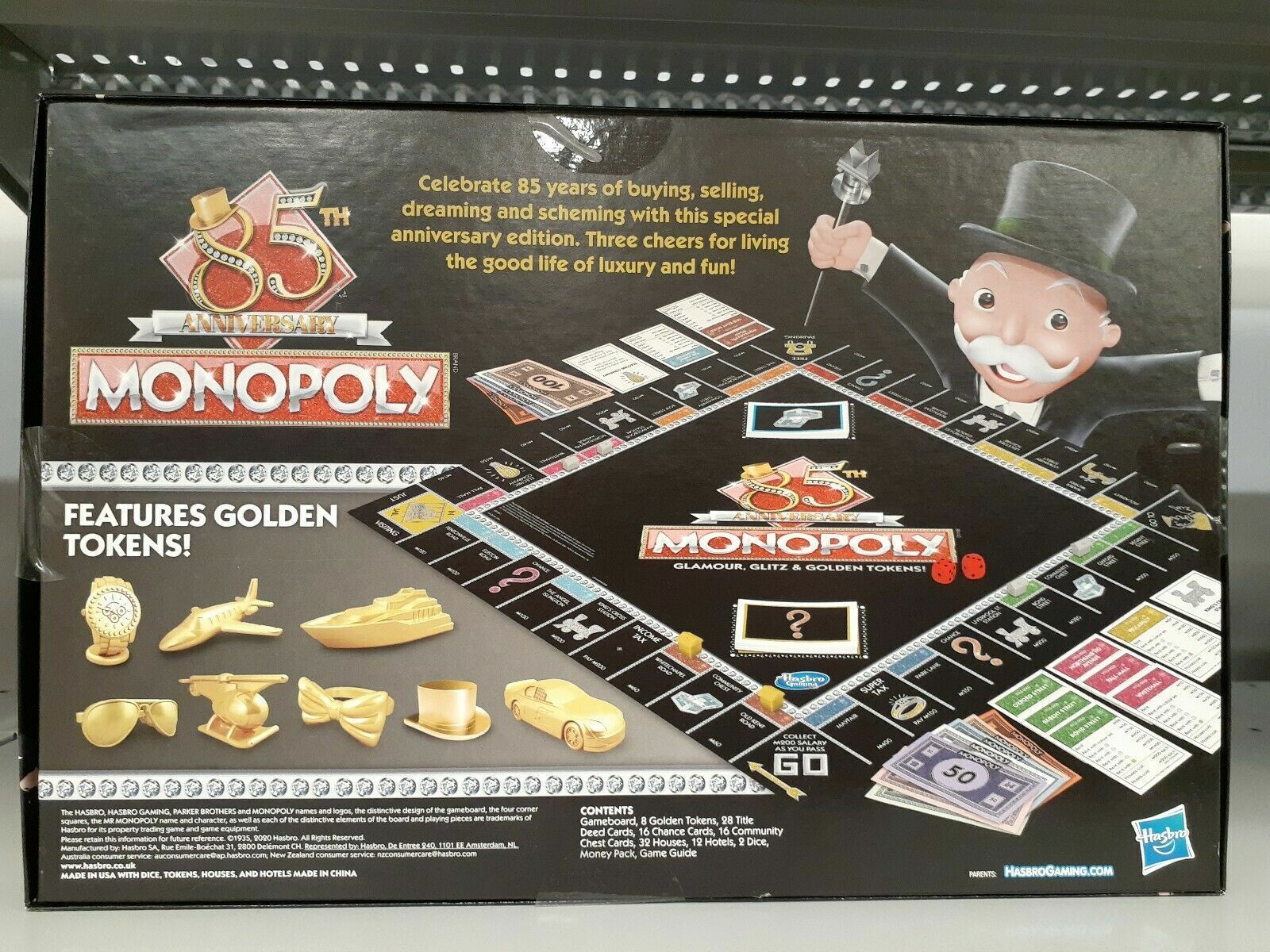85th Anniversary Monopoly Gold Tokens Premium Black Board Game Family Board Game