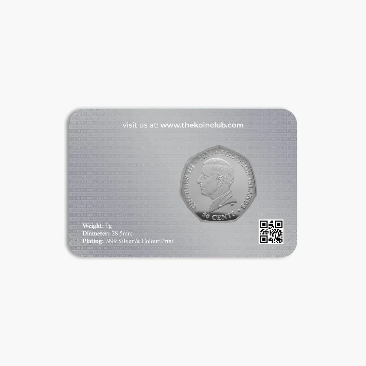 Officially licensed and struck to a Brilliant Uncirculated finish, this .999 silver plated Solomon Islands 50 cent coin features a full-colour design of Mr. Monopoly dashing across the iconic “GO” square. Housed in a secure capsule and presented in a premium The Koin Club blister card for safe keeping, it’s the perfect keepsake for fans of the classic board game.