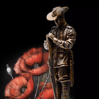 The figurine includes a recording to be used during the time all Australians stop to remember on Remembrance Day. The recording includes the Ode, the Last Post, and a minute of silence, allowing you to respectfully honour our heroic servicemen and women.