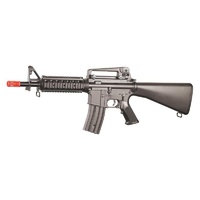 Metal handguard, receiver, buffer tube, handle, sights, barrels.