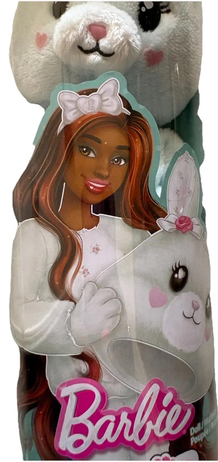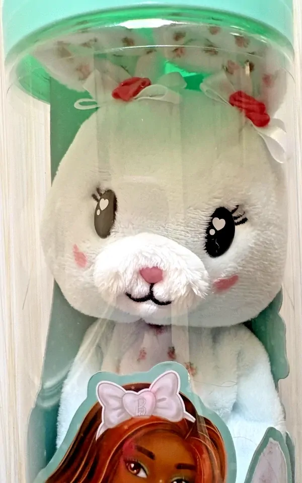 Barbie Cutie Reveal Cuddly Series dolls offer the cutest wow moments as kids open the package to find 10 surprises! Which doll will you reveal? There's an adorable pastel-colored Bunny, Kitten and Lamb. Remove the plush costume to reveal a posable Barbie doll with long, color-streaked hair. Discover more surprises to open like a skirt, headband, a pair of boots, a bow-shaped hair comb and a matching mini pet! Reverse the plush top for a fleece jacket and flip the costume head for a pet bed. Use water for even more cuteness with repeat color-change transformation on both the doll's and the mini pet's faces! Kids will love discovering -- and collecting -- all the cute surprises in this adorable series. Each doll sold separately, subject to availability. Dolls cannot stand alone. Colors and decorations may