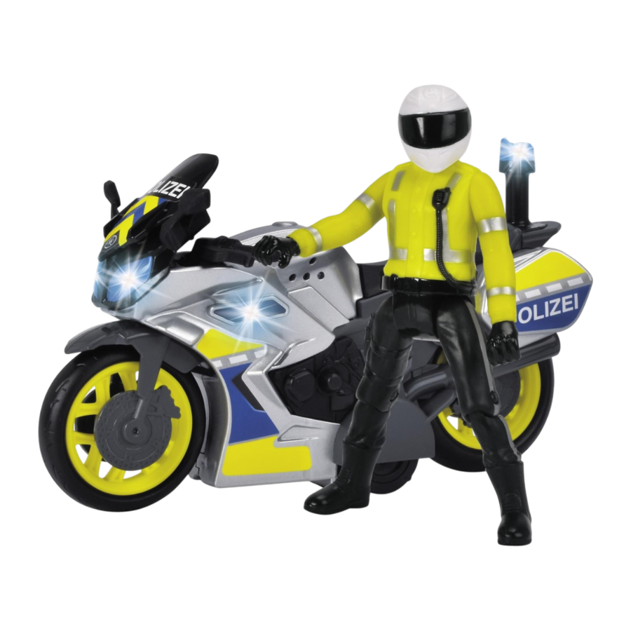 Police officers don’t always travel in patrol cars. For fast-paced manhunts or city patrols, motorbikes are often used. This Dickie Toys police motorbike allows young children to immerse themselves in the world of a police officer and solve crimes.