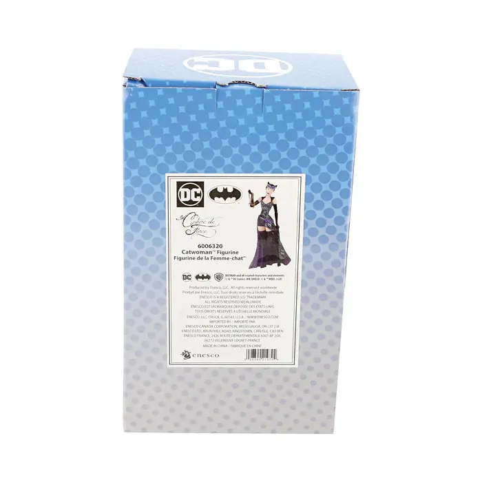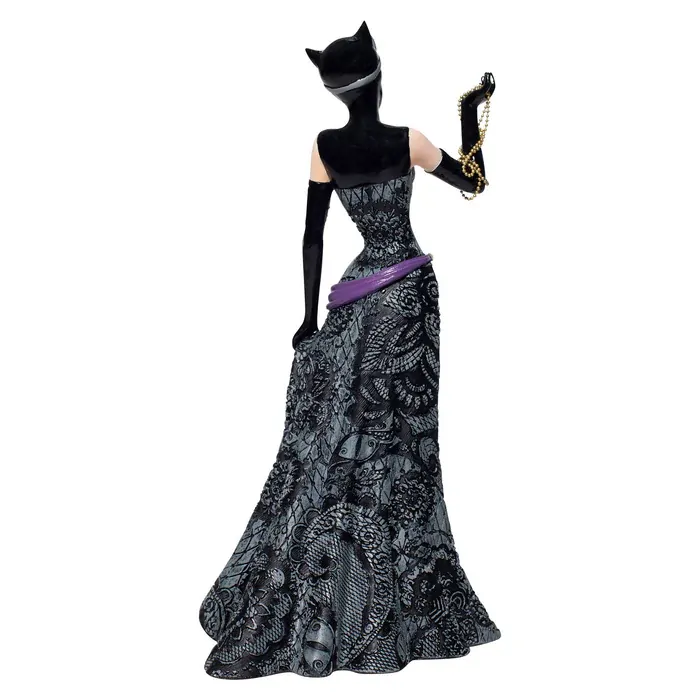 Fierce meets fabulous in this meticulously reimagined hand-crafted figure inspired by DC Comics' most iconic heroines and villains. Catwoman is dressed to the nines in leather and lace purring in delight over her recent jewelry heist.