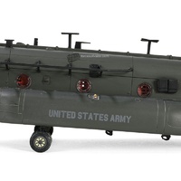 Designed as a turbine-powered replacement for the CH-37 Mojave, the CH-47 was first flown on September 21st, 1961. This iconic helicopter has had a long service history, seeing action in many different wars, from Vietnam to Afghanistan. The Chinook is the U.S. Army's heaviest-lifting helicopter, primarily serving as a troop transporter, with secondary roles including artillery emplacement and battlefield resupply. It has a crew of three and can move 55 combat-ready troops. Its wide-loading ramp can be opened in-flight for paratroopers, and three cargo hooks can extend through a floor hatch, which allows the Chinook to be used as a flying crane.