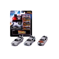 Based on their appearance across all three iconic Back to the Future movies, this Replica 3-Pack features three 1.5-inch DeLorean Time Machine Nano Hollywood Rides Die-Cast Vehicles!