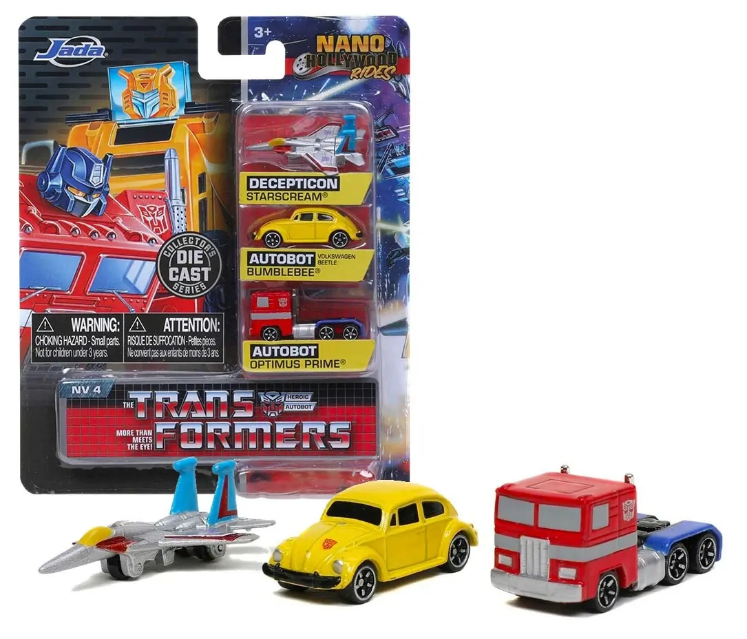 Based on their G1 appearance, Starscream, Bumblebee and Optimus Prime have been brought to life as three 1.5-inch Nano Hollywood Rides Die-Cast Vehicle Replicas!