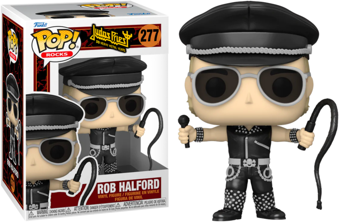 This Pop! features Rob Halford wearing a leather police uniform, holding a mic and whip.