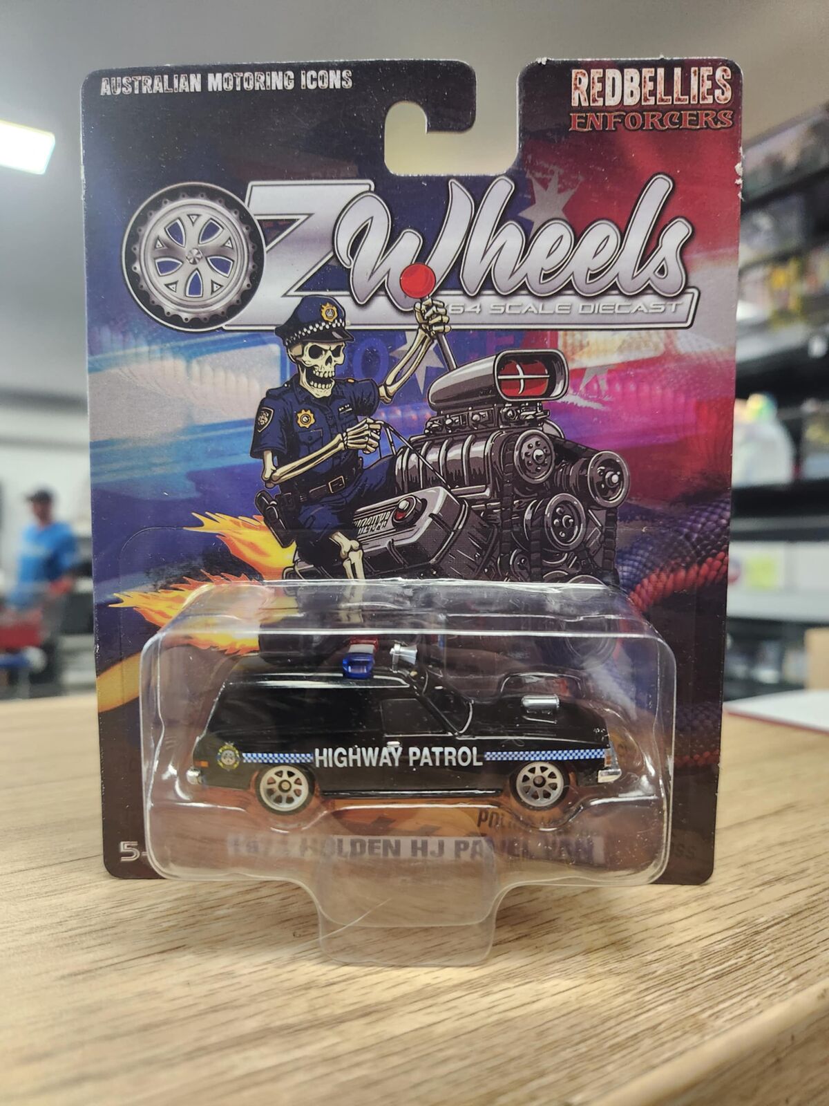 Capture a piece of Australian automotive history with the Oz Wheels Carded Red Bellies ENFORCERS 1974 Holden HJ Panel Van. This collectible 1:64 scale model is a meticulous representation of the iconic Holden, finished in a sleek black colour that's sure to complement any collection.