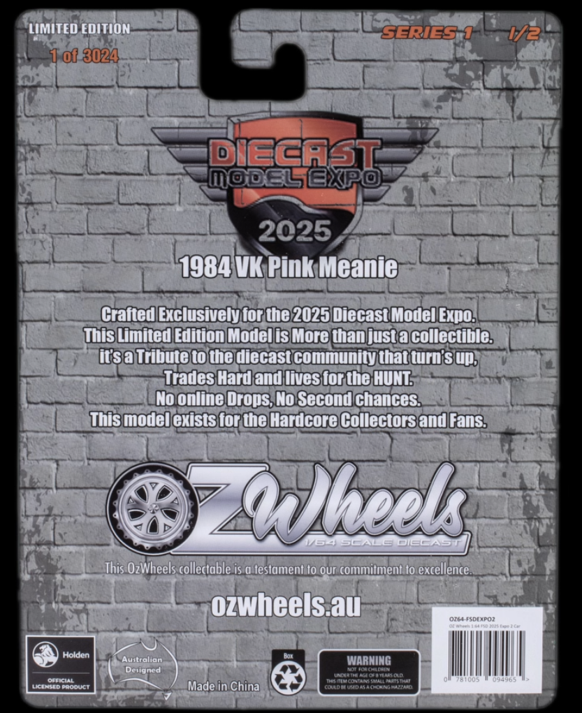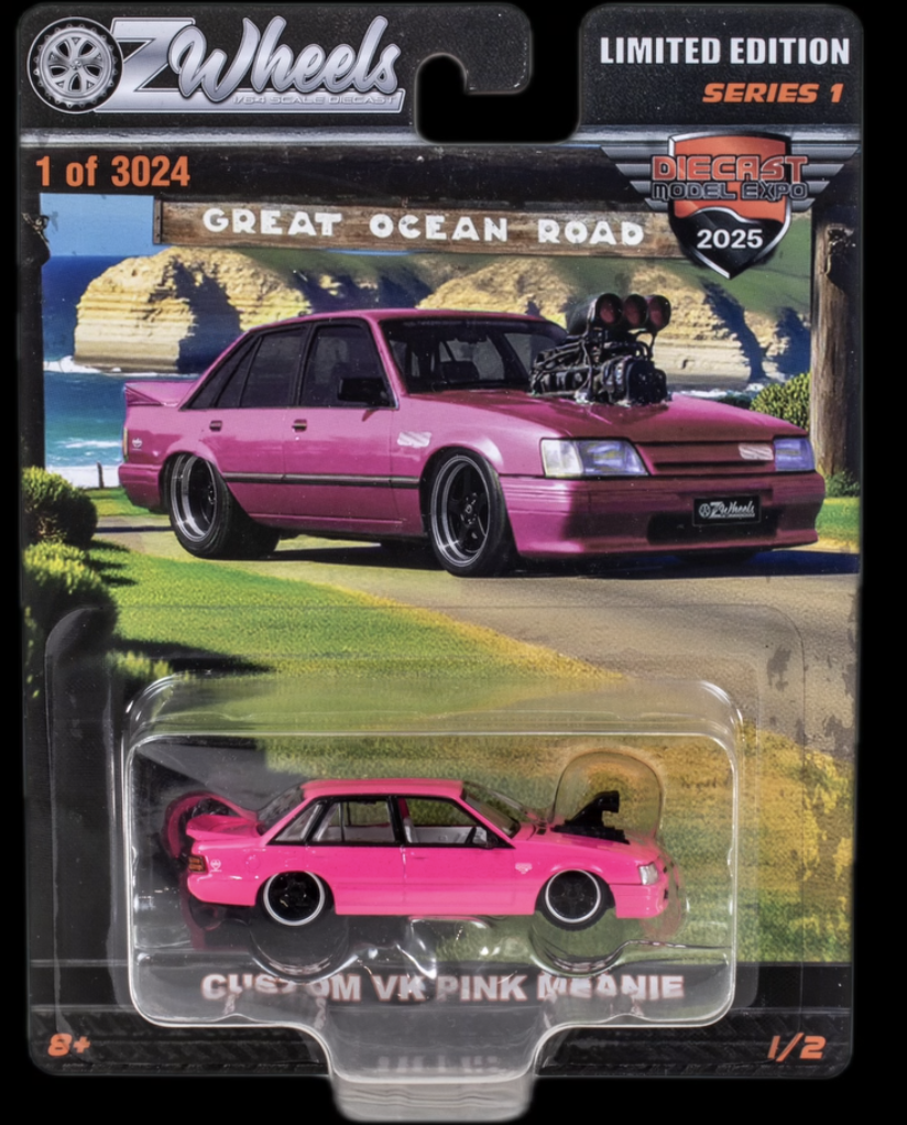 Explore the vibrant Oz Wheels Pink VK Meanie, a standout piece at the Melbourne Diecast Expo, limited to just 3024 units. This diecast model car captures the essence of speed and style, boasting a brilliant pink hue that's sure to turn heads in any collection.