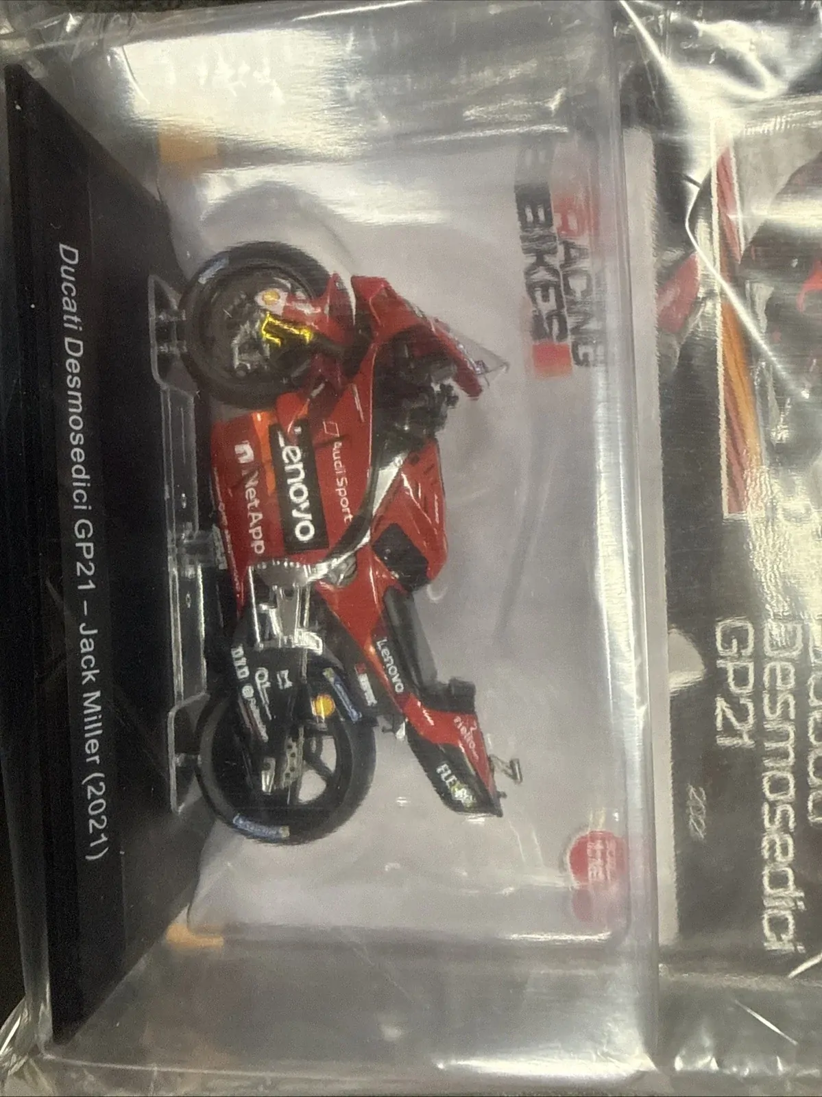 Delve into the world of MotoGP with the exquisite Racing Bikes The Collection ISSUE 11 DUCATI DESMOCEDINI GP21, a precise 1:18 scale replica of the iconic motorcycle ridden by Jack Miller in 2021. Celebrate the legacy of engineering and racing prowess with this detailed model, which captures the essence of speed and style synonymous with the Ducati brand. This collector's piece, originating from the organization MotoGP, pays homage to the two-wheeled warriors of the track, specifically the 2007 Ducati Desmosedici ridden by the talented Casey Stoner. A must-have for enthusiasts and collectors alike, it embodies the spirit of motorcycle racing and the unwavering dedication to excellence