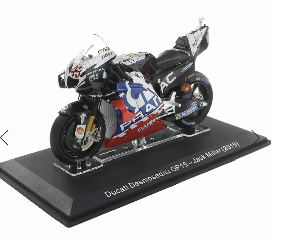 Collector’s insight: A sharp, modern replica for collectors who appreciate Ducati innovation and Jack Miller’s aggressive riding style.