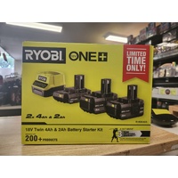 Ryobi 3 pack battery starter pack 2 x 4.0ah ONE+ 18v lithium 1 x 2.0ah and charger