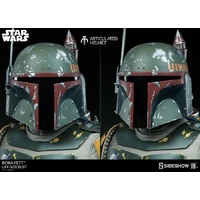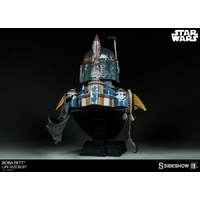 "You are free to use any methods necessary, but I want them alive. No disintegrations." As you wish. Sideshow is proud to present the Boba Fett Life-Size Bust. Created in partnership with the talented artists at Legacy Effects, this bust is crafted from fiberglass, polystone, and aluminum. Measuring over 30” tall, Boba Fett has an articulated helmet and rangefinder and he has synthetic hair Wookiee scalps as trophies. His chest armor includes a light-up element for an additional display option in your collection. Collect a bounty and hire the Boba Fett Life-Size Bust for your Star Wars collection today!