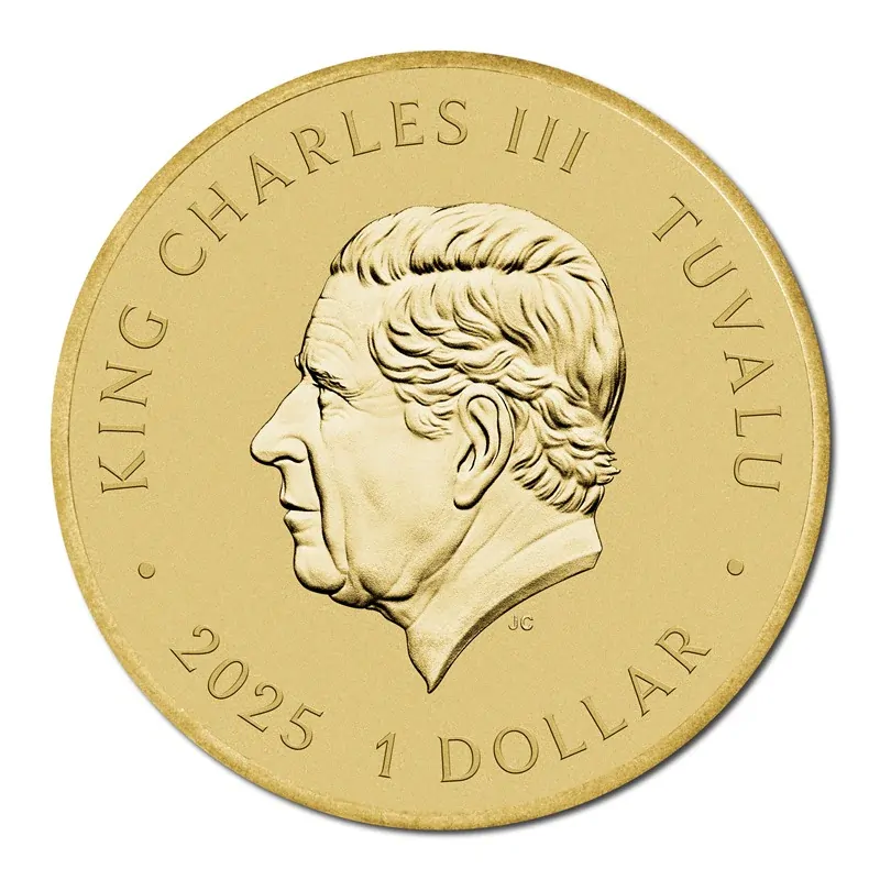 The coin’s reverse portrays SpongeBob SquarePants and his friends all depicted in full colour. The background represents the underwater city of Bikini Bottom, along with flower shaped motifs.