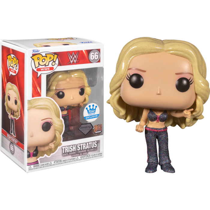 Now it's time get some Stratusfaction, courtesy of this stunning new Trish Stratus Pop! Vinyl Figure, featuring the seven-time WWE Women's Champion wearing ring attire that boasts a sparkling Diamond Glitter finish.